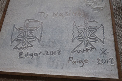 We visited the National Museum in Port Vila. Edgar, one of the museum staff originally from Pentecost, was gracious enough to share his sand Droing expertise with Paige. Sandroing is a form of drawing, of geometric figures in the sand, each drawing is a type of maze which is traced as a continuous line, often without lifting the finger from the sandy ground. These drawings were/are used to leave messages, explain concepts and to teach children.